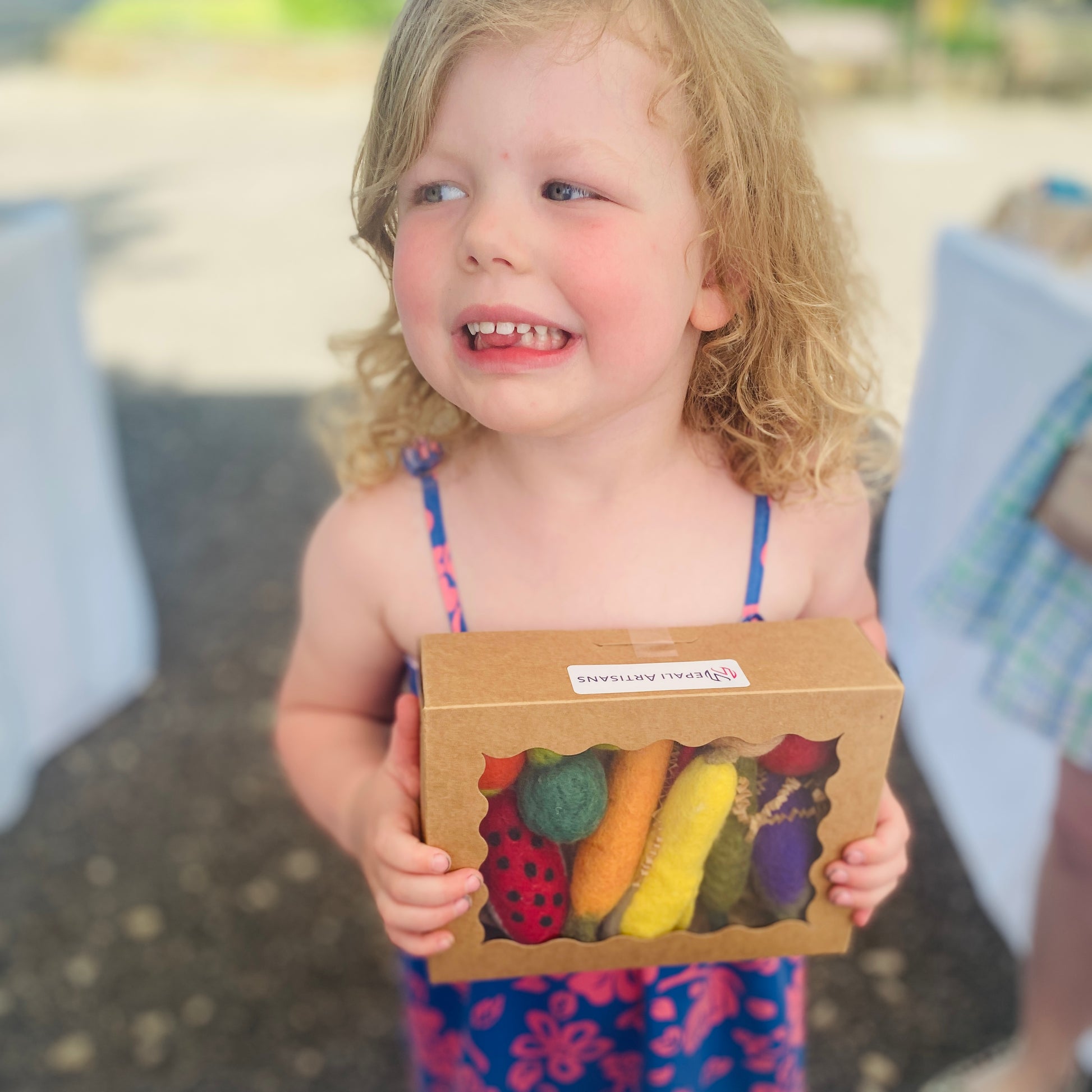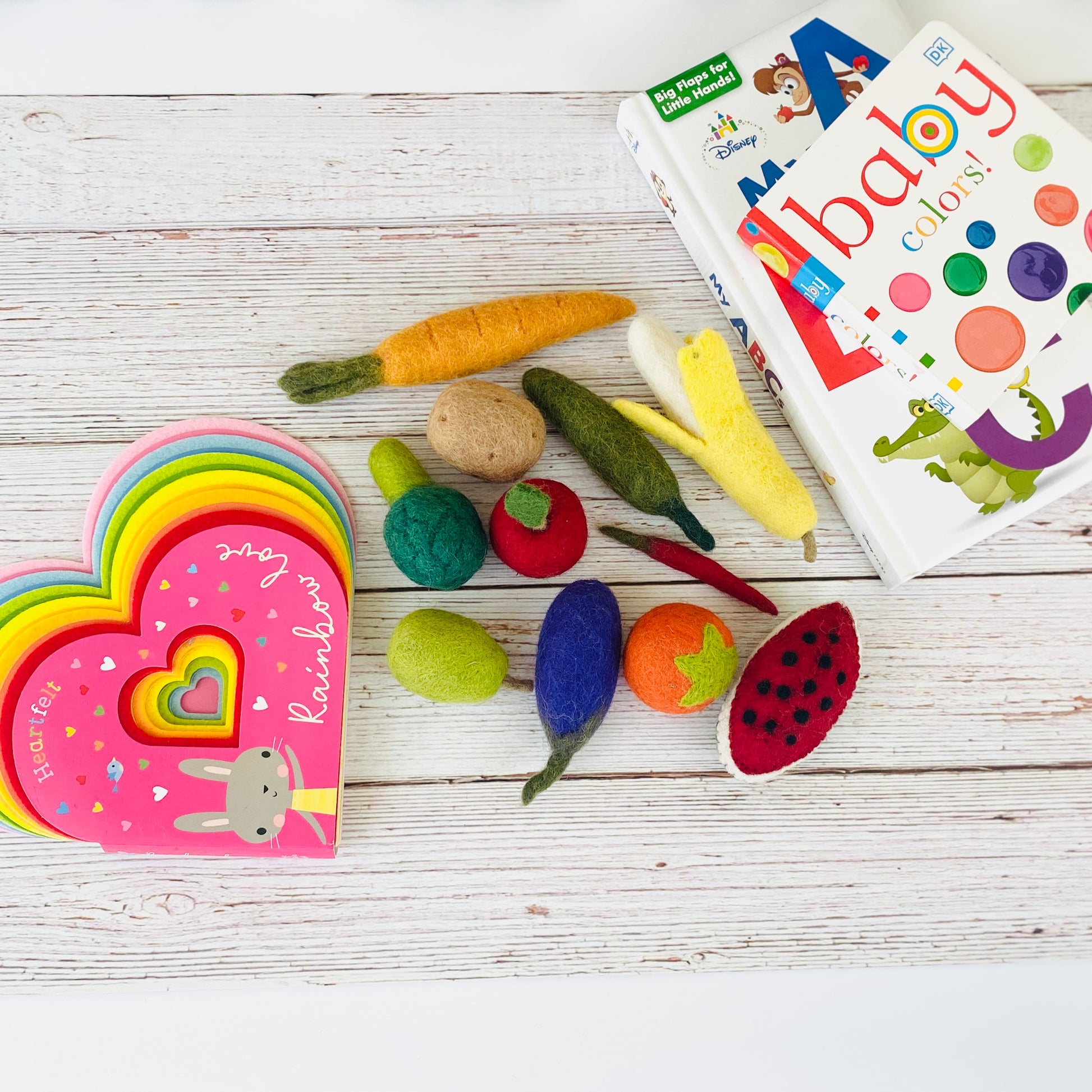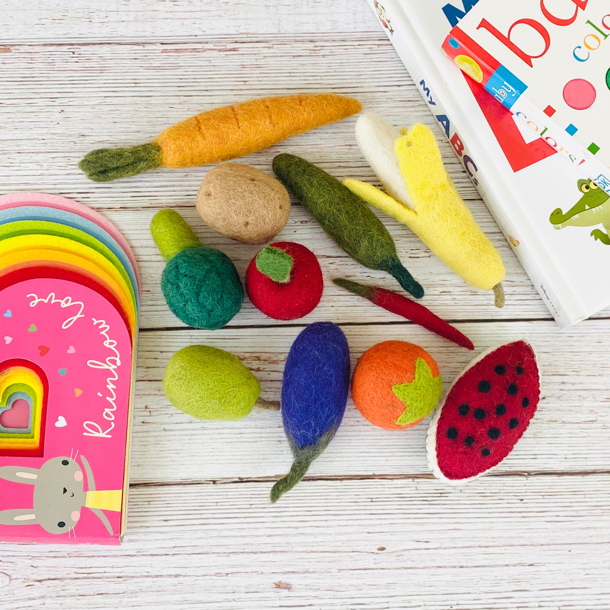 These felt fruits and vegetables are great add-ons as pretend play food for your child or toddler's playroom. They can learn the names and colors of these common fruits and vegetables in a fun way. Since these are sensory toys, it also helps your child develop cognitive learning and motor skills. These are great gifts for birthdays, baby showers, and holidays.