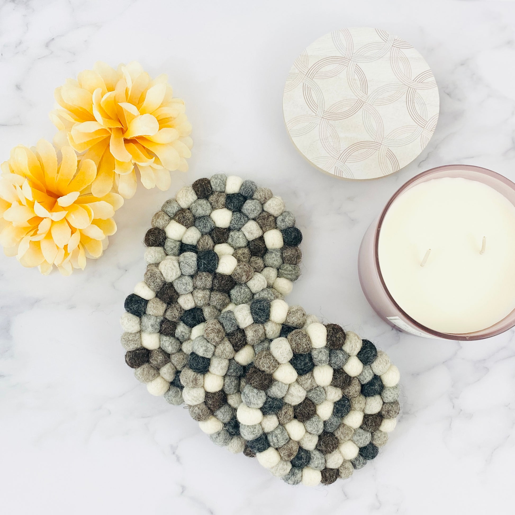 Neutral Felt Ball Coaster Set
