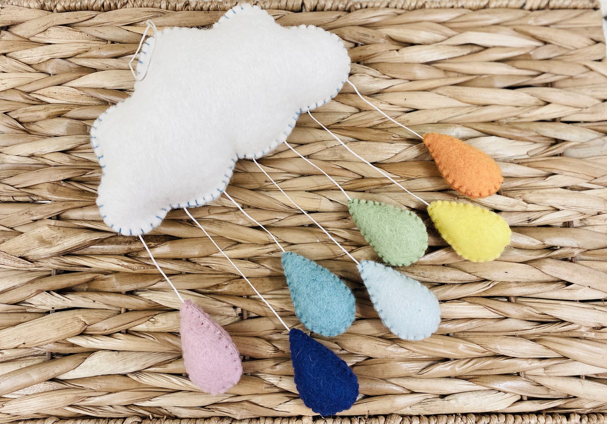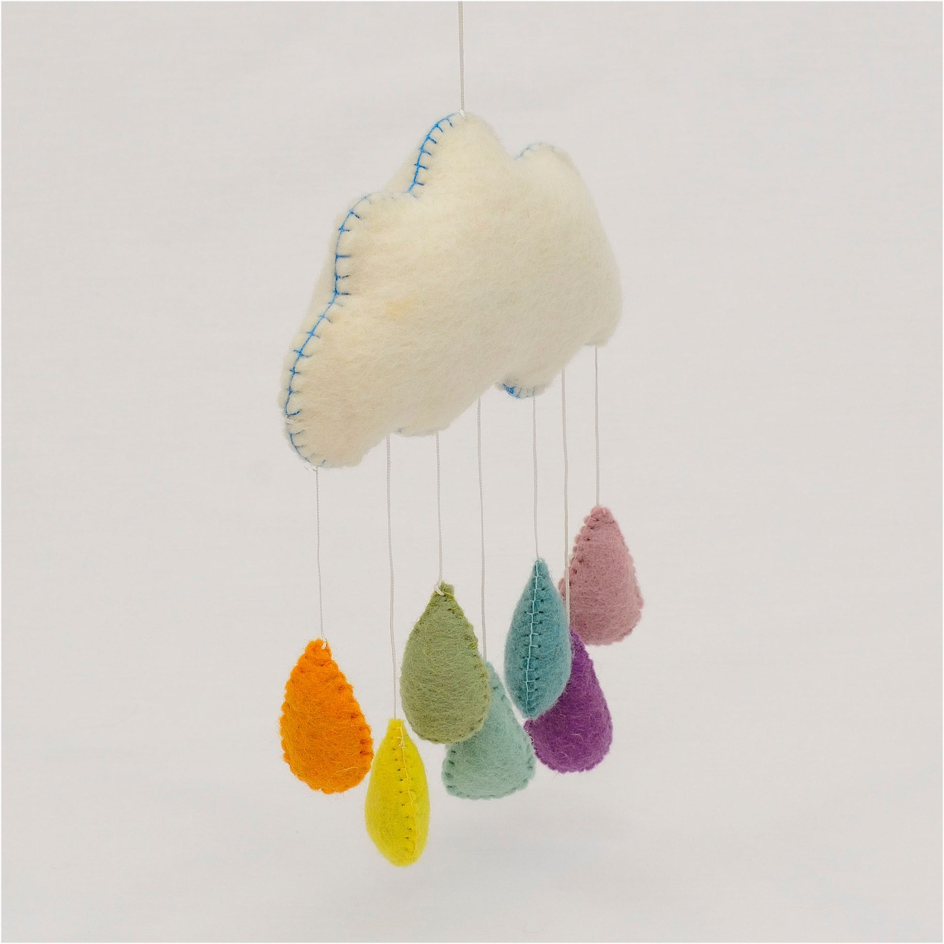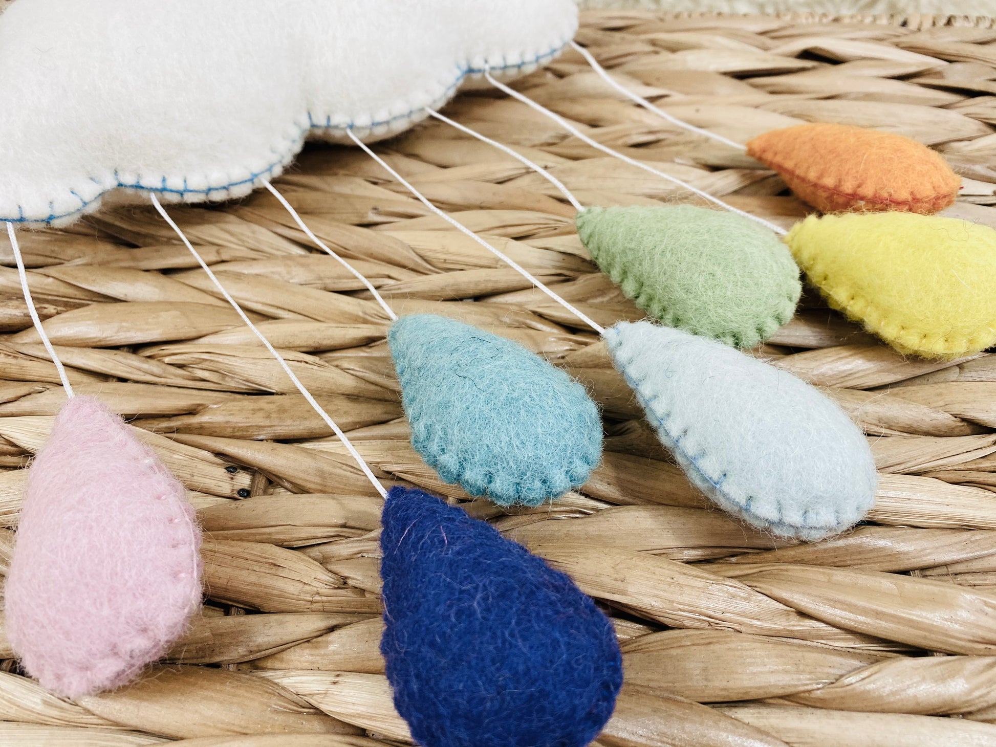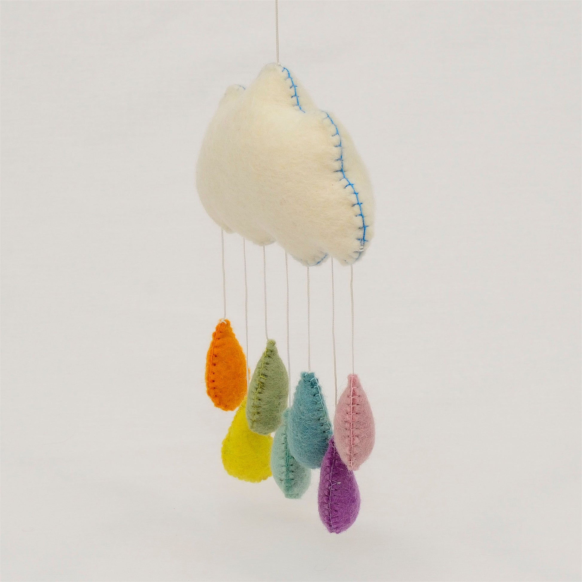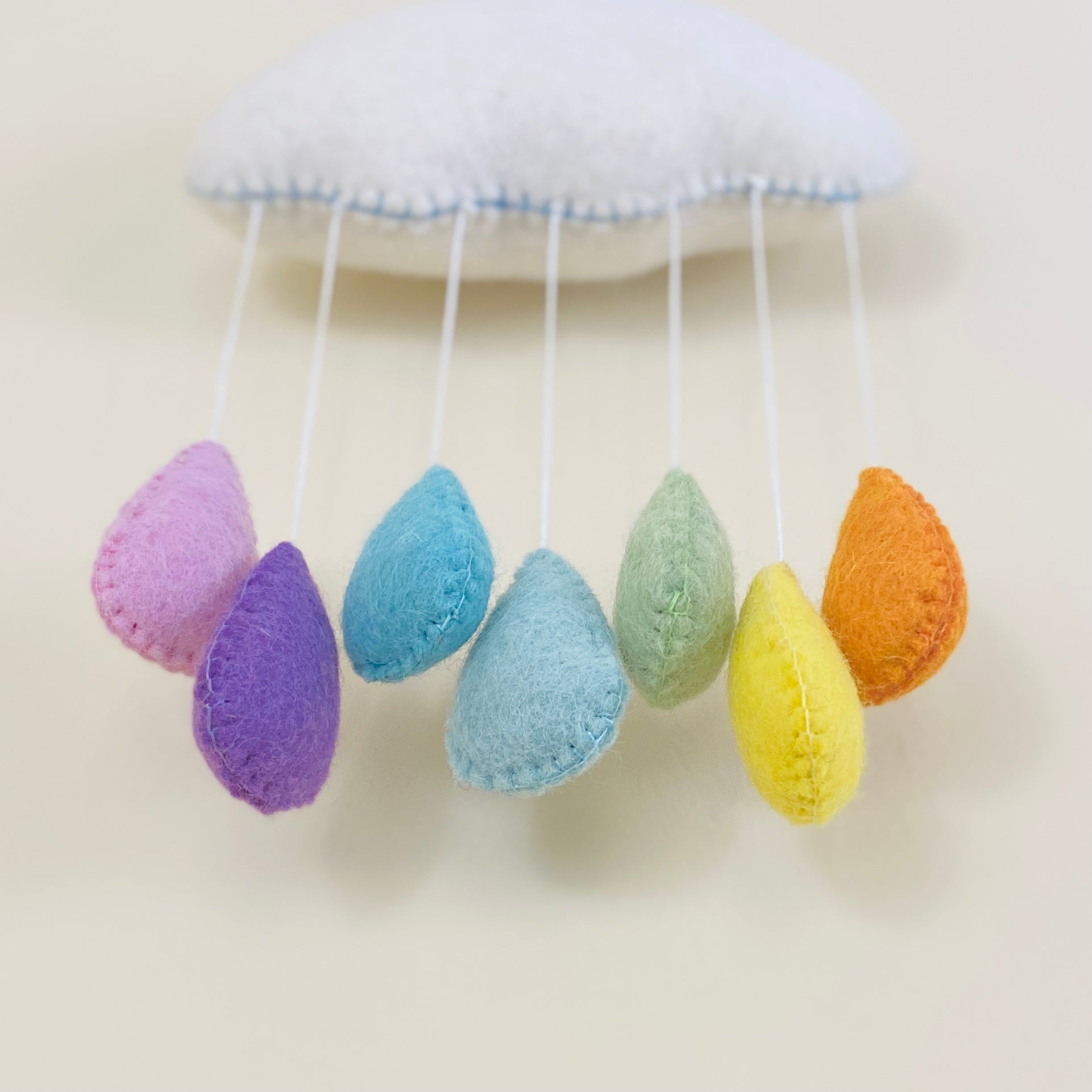 This rainbow cloud mobile has pastel color raindrops. It adds color and coziness to the room. Great for nursery decor or baby shower gifts or just hang it on the wall for decoration.